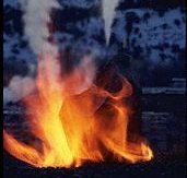 pool and natural oil keeps the flame ignited, and the flame was probably